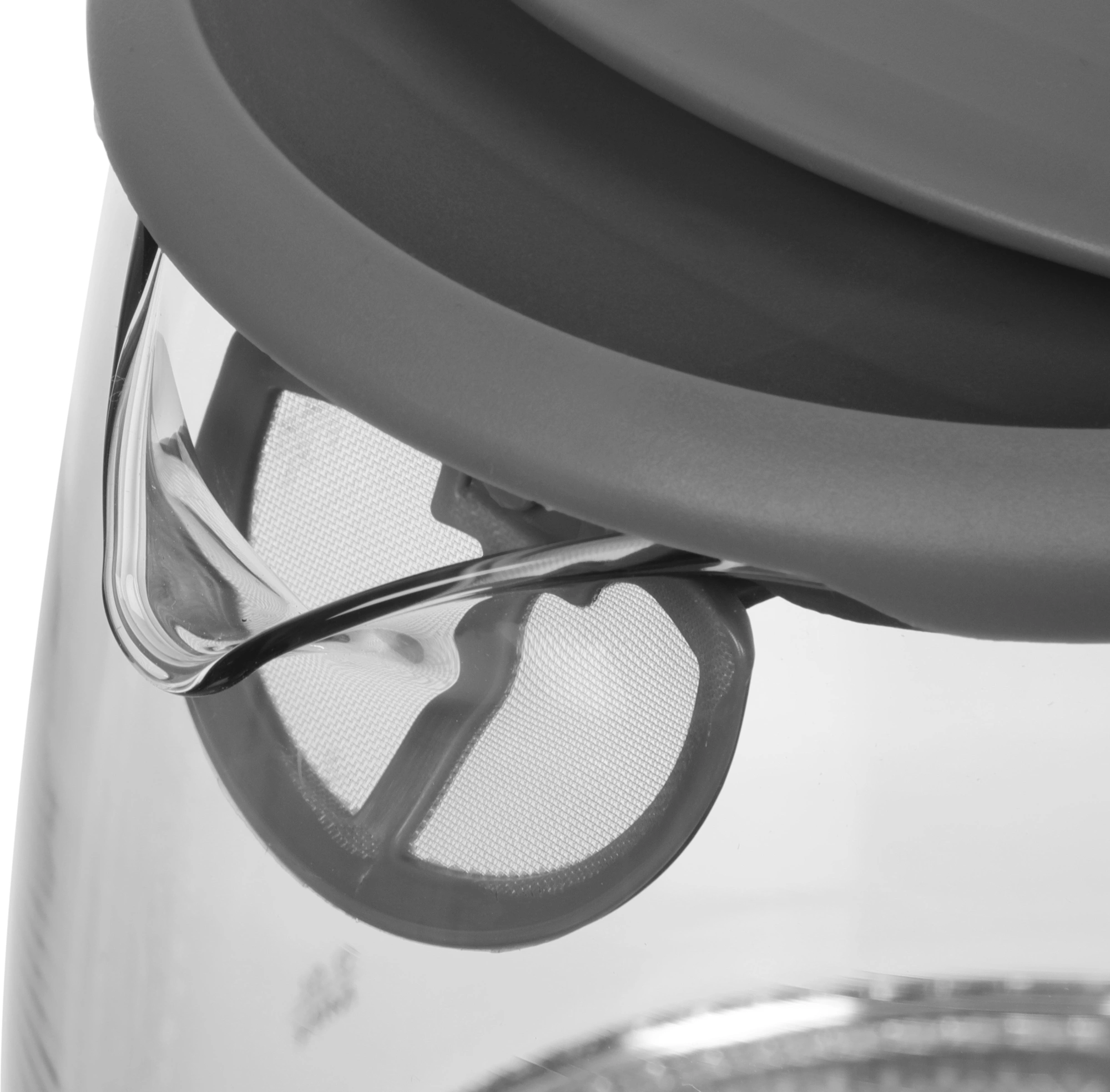 Максимальную безопасность прибора обеспечивают специальные функции: индикатор включения, автоотключение и защита от включения при недостаточном уровне жидкости. Корпус чайника изготовлен из боросиликатного стекла, устойчивого к высокой температуре.