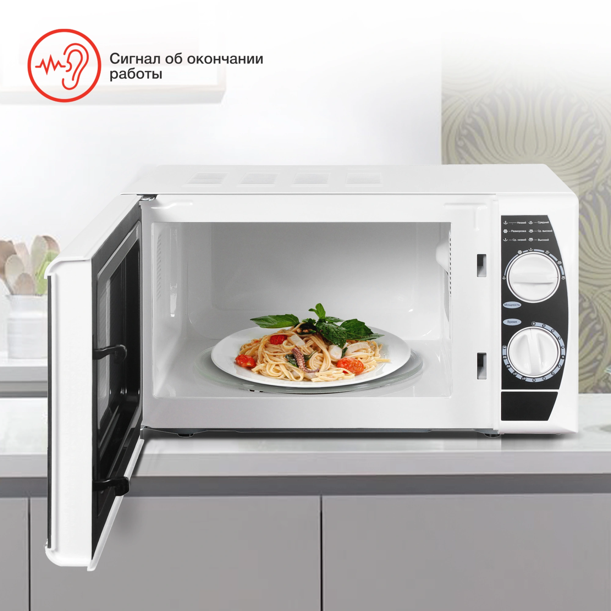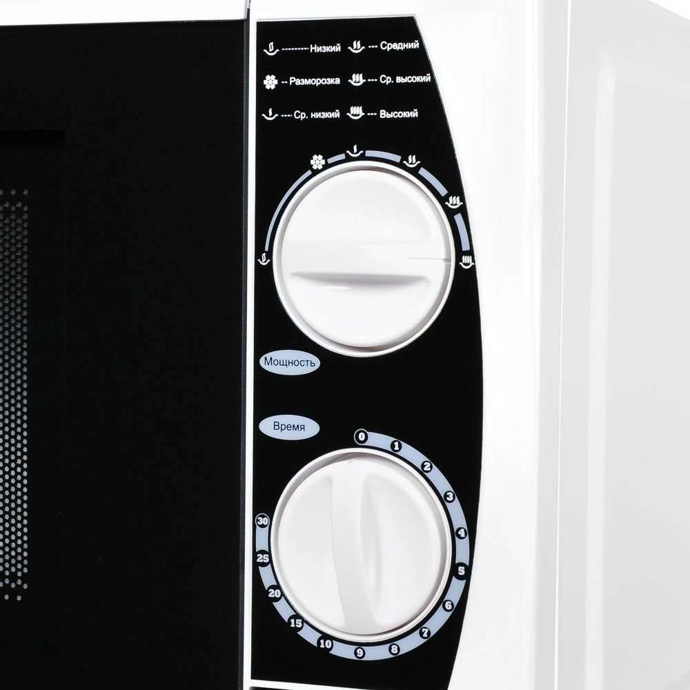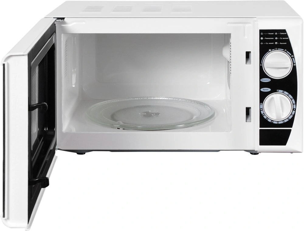 Стильный дизайн, продуманная конструкция и компактные объемы микроволновой печи STARWIND SMW2920 позволят идеально вписаться в интерьер любой кухни, а особенно – малогабаритной. Корпус печи выполнен из металла в черно-белом цвете. В нижней части предусмотрены прорезиненные ножки, благодаря которым прибор надежно фиксируется на поверхности и не ездит по ней. На дверце установлено смотровое окно из жаропрочного стекла. Справа от двери вверху находится ручка регулировки мощности. В зависимости от типа разогреваемого или готовящегося продукта можно выбрать: «максимальную», «высокую», «среднюю» или «низкую» мощность. А для бережного размораживания фруктов, ягод, овощей или мяса, предусмотрен специальный режим «разморозки», используя который вы сэкономите уйму времени и полезных витаминов и микроэлементов в продуктах.