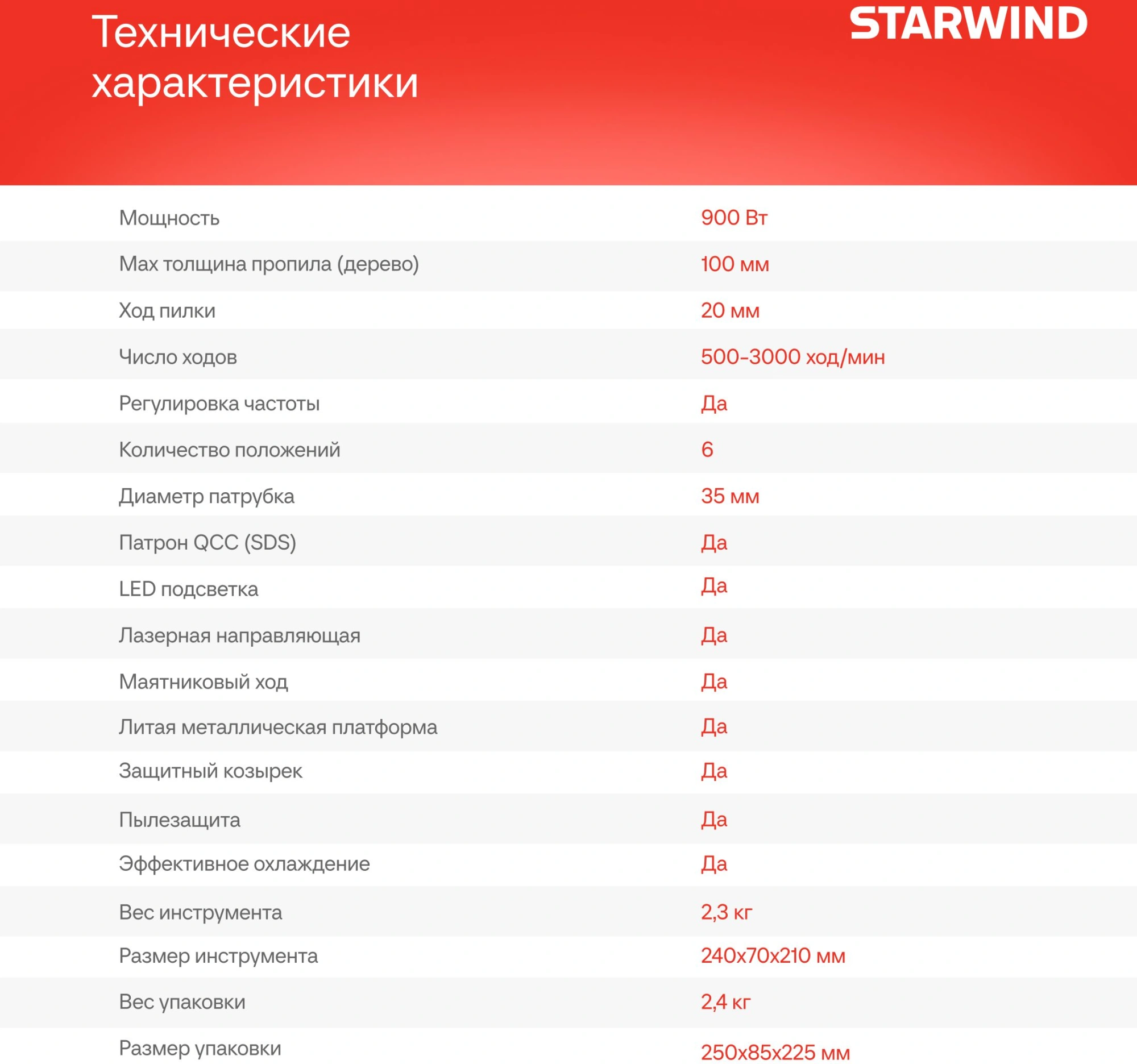 Лобзик Starwind JS100-900S1 +2пил. 900Вт 3000ходов/мин от электросети