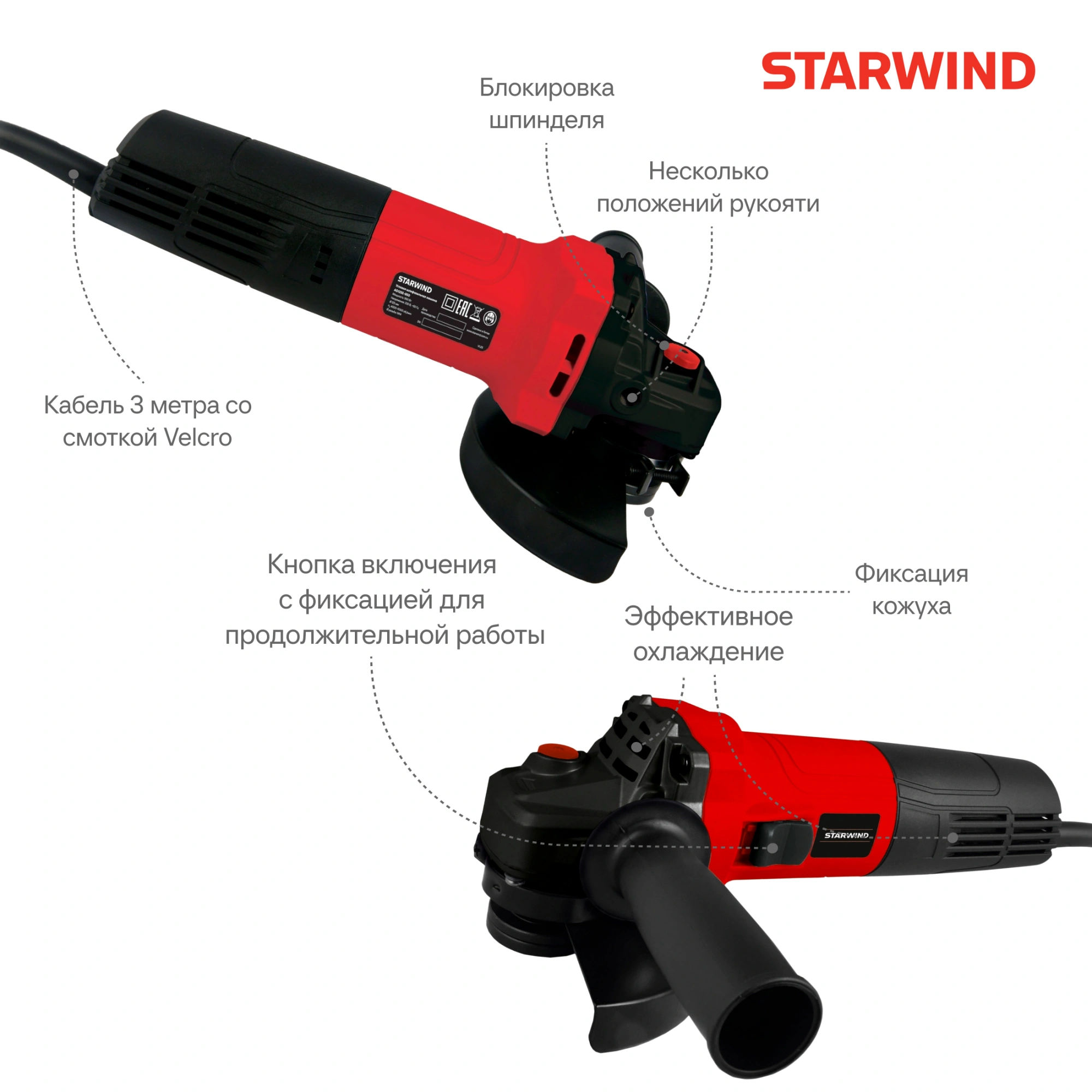 Углошлифовальная машина Starwind AG125E-950 950Вт 11000об/мин рез.шпин.:M14 d=125мм