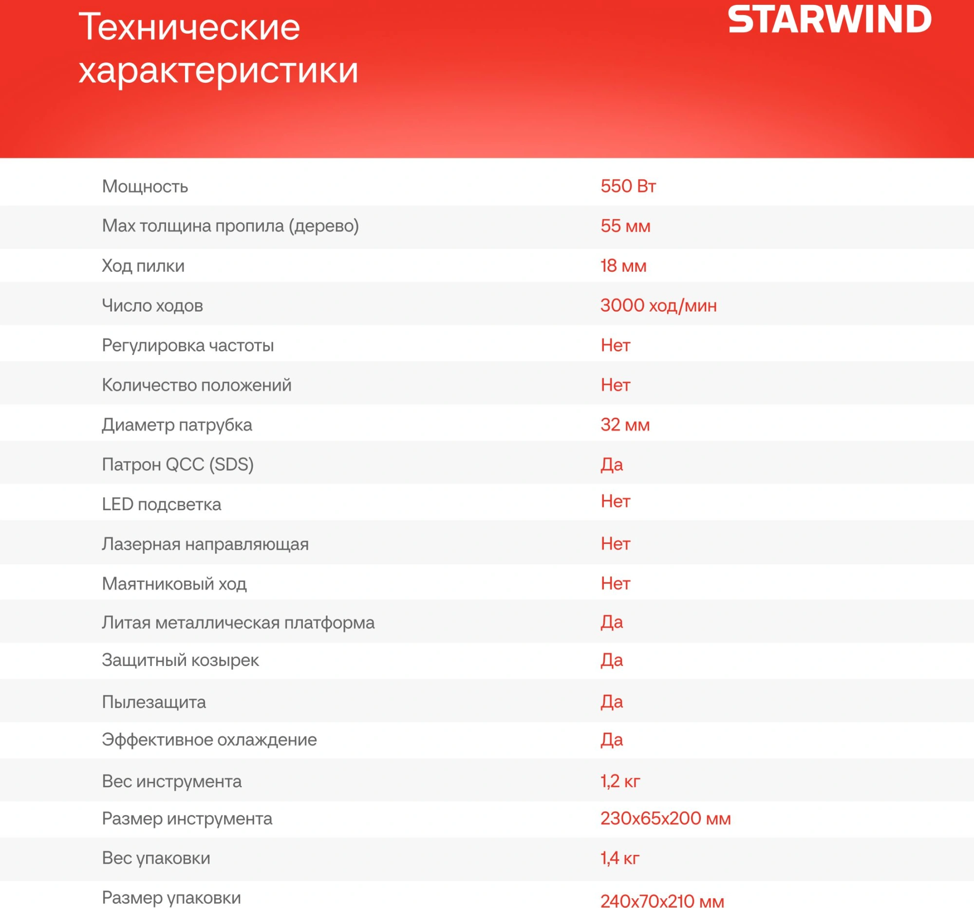 Лобзик Starwind JS55-550S1 +1пил. 550Вт 3000ходов/мин от электросети