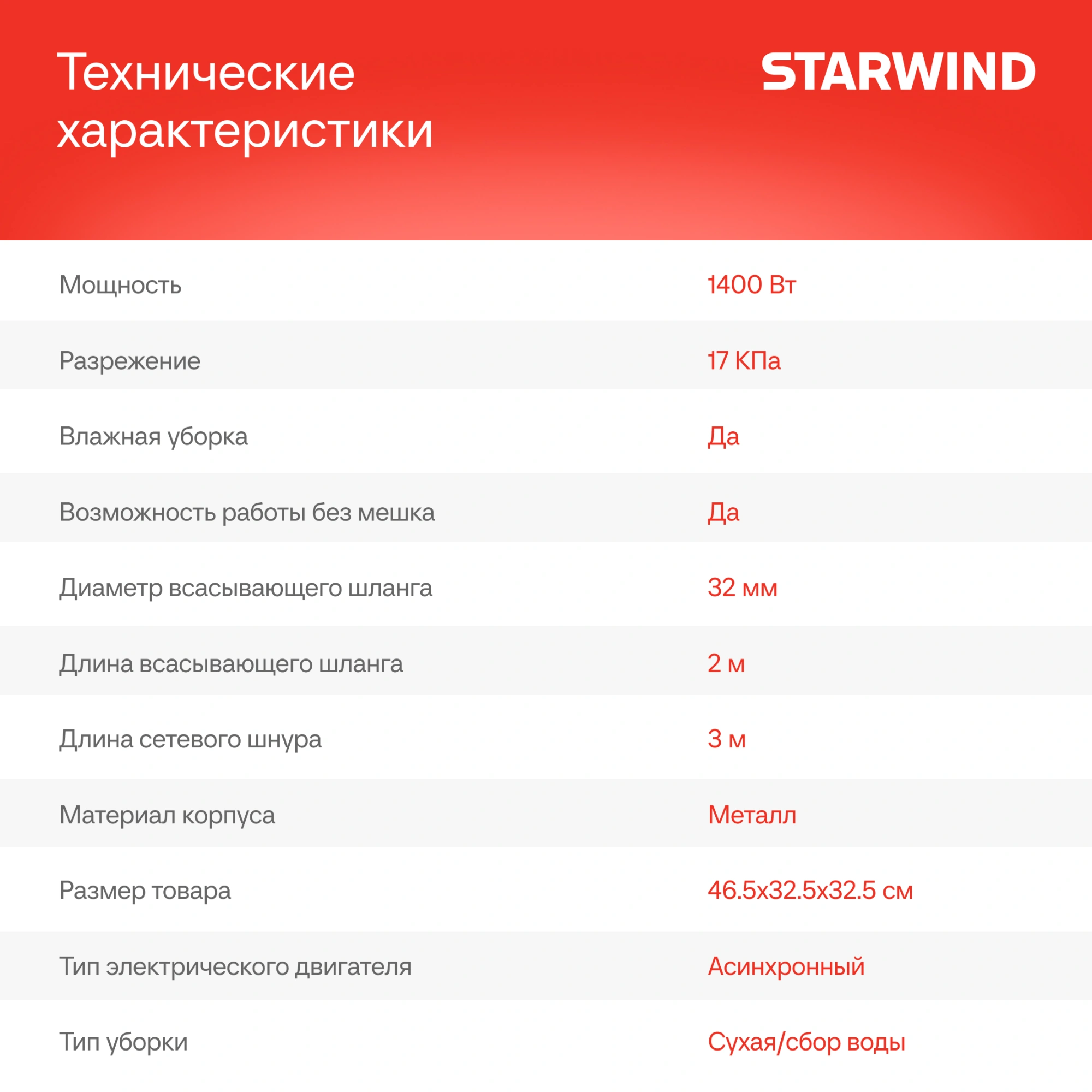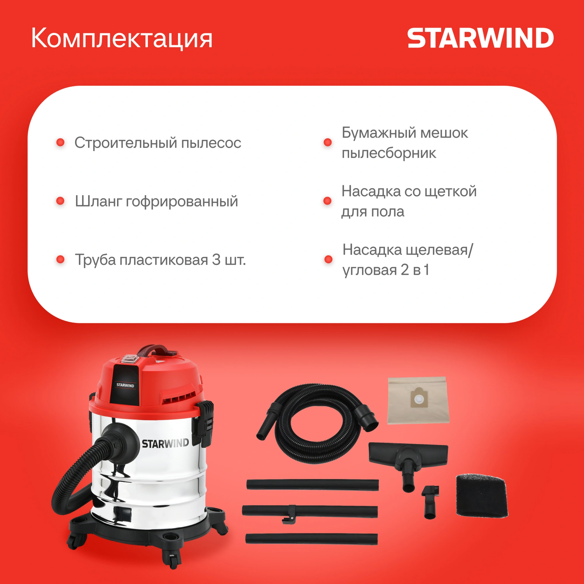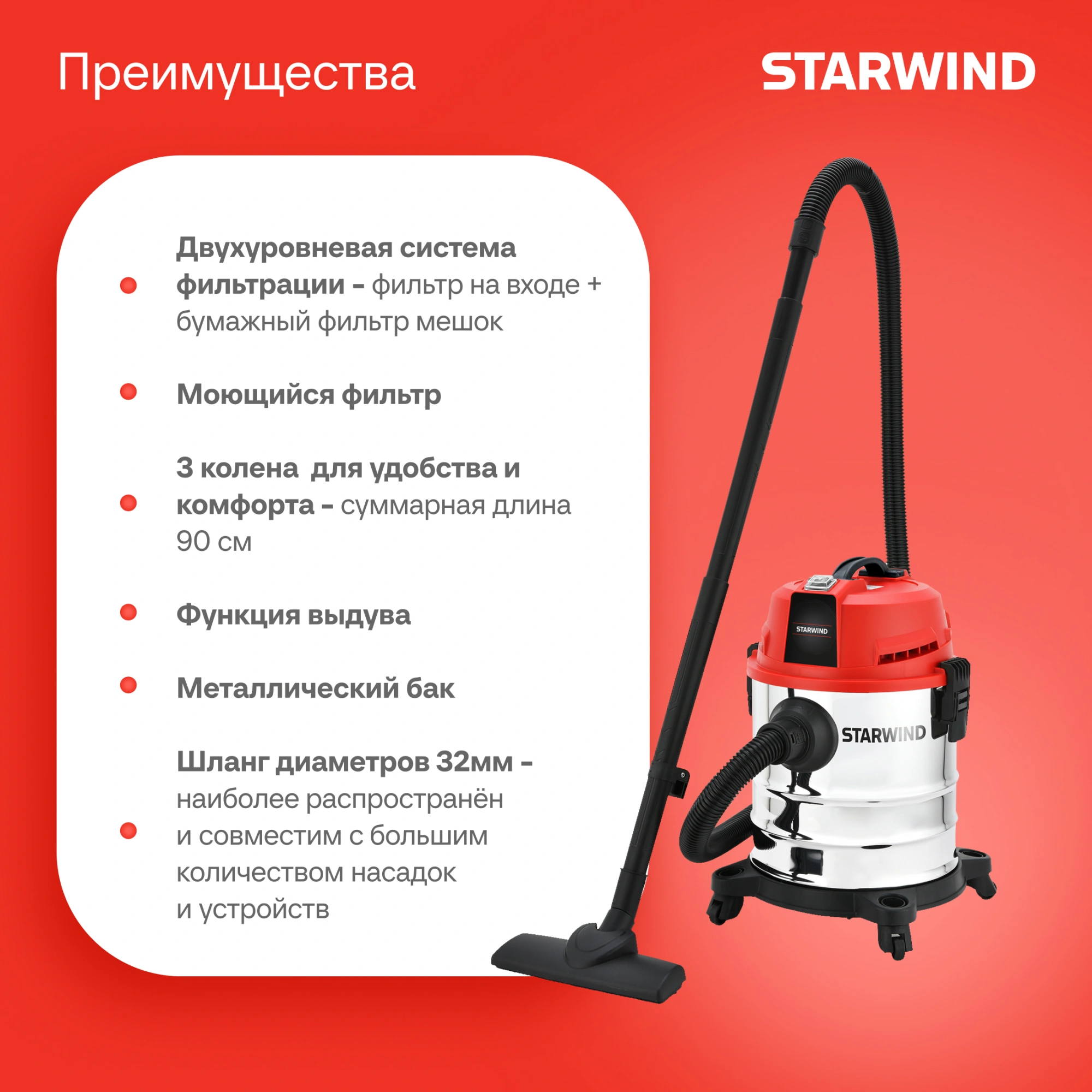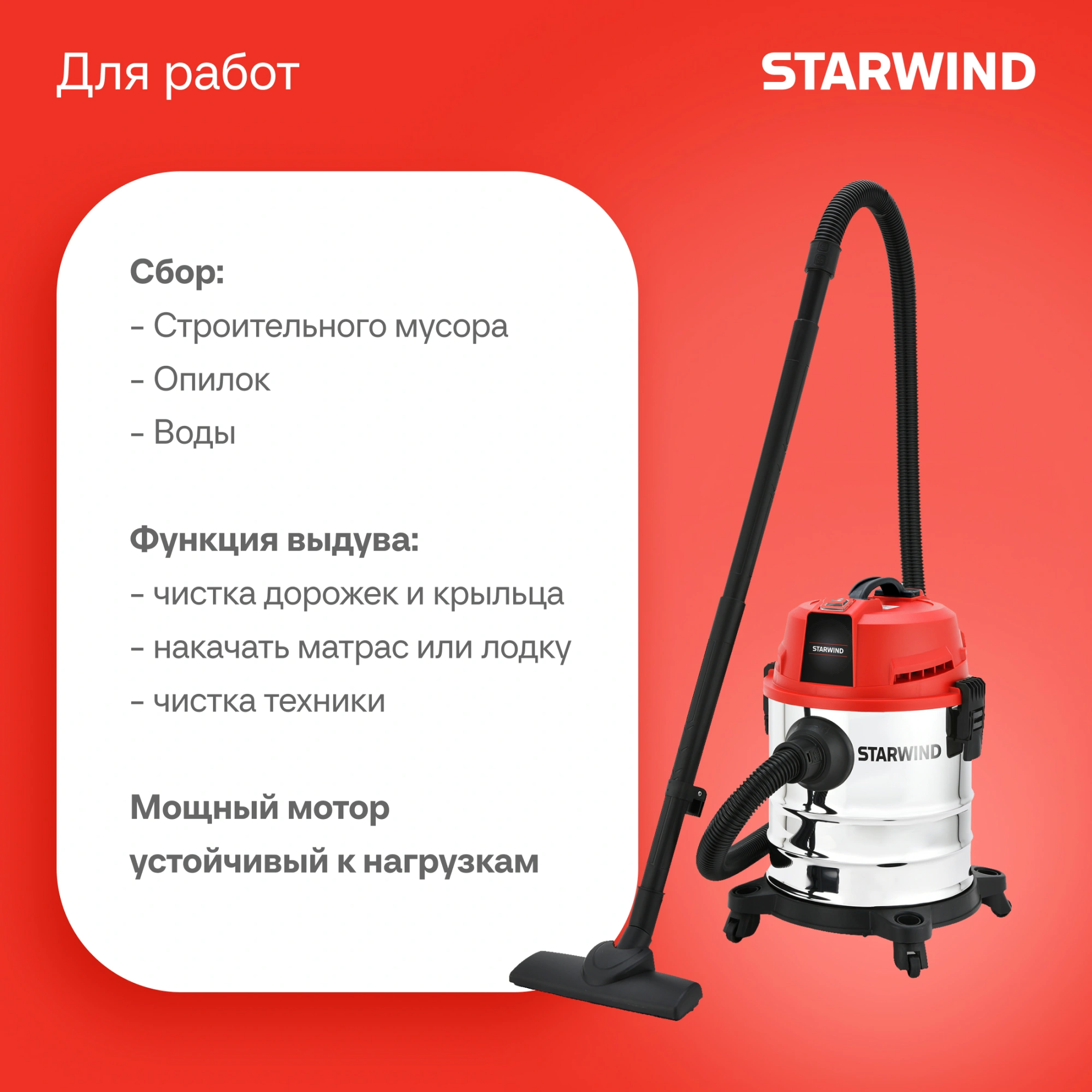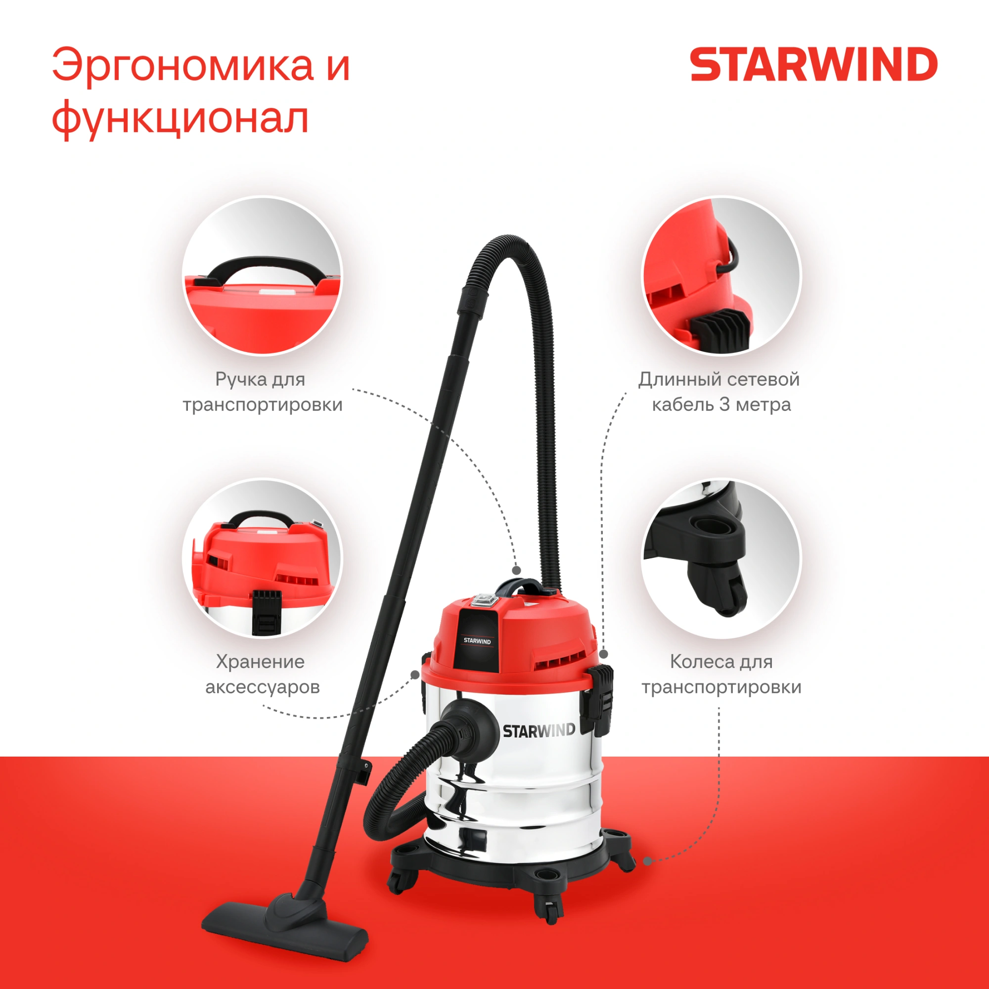 Строительный пылесос Starwind VC20-1800MS1 1400Вт (уборка: сухая/влажная/выдув/сбор воды) черный